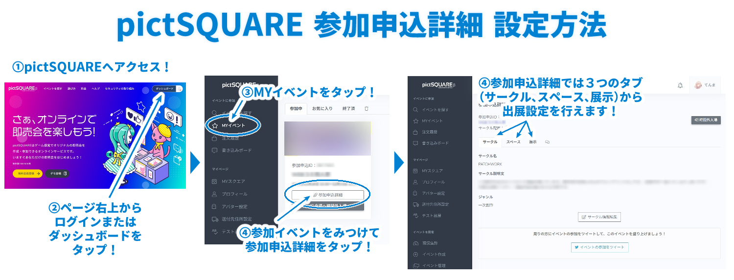 ※出展区分、店舗設定、サークルカット等は後から設定できます